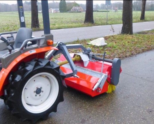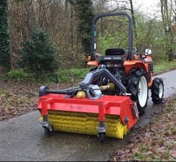De Rumex veegmachines zijn speciaal ontworpen voor het gebruik achter compacttractoren. De machine heeft een instelbare veeghoek en kan door de aankoppelbok te draaien ook als frontveegmachine gebruikt worden.